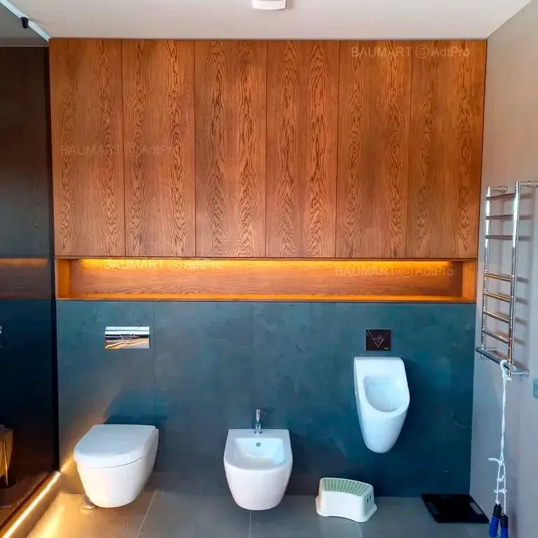 Встроенный шкаф над инсталляцией "Фостер" — элегантное решение для организации пространства ванной комнаты