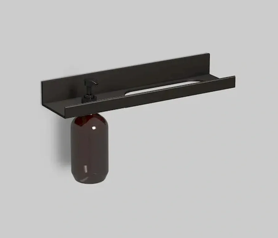 Специально разработанная для удобного размещения ёмкостей с дозаторами, полка MyOry Towel&Soap сочетает практичность и современный дизайн. Вырез в бортике надежно фиксирует флаконы, а защитное покрытие гарантирует долговечность даже при постоянном контакте с водой.