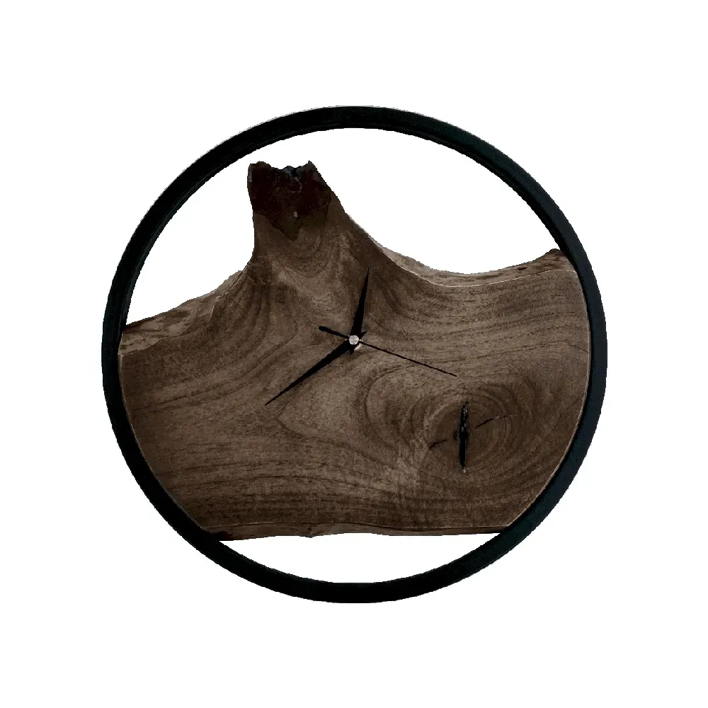 Оригинальная модель настенных часов из может быть выполнена из заготовки массива горного вяза либо ореха. По периметру часов, по мимо круглой рамки, из металлического профиля может быть легкий круг из металлической полосы. Наличие моделей уточняйте у наших менеджеров. Возможно изготовление под заказ по вашим индивидуальным пожеланиям.