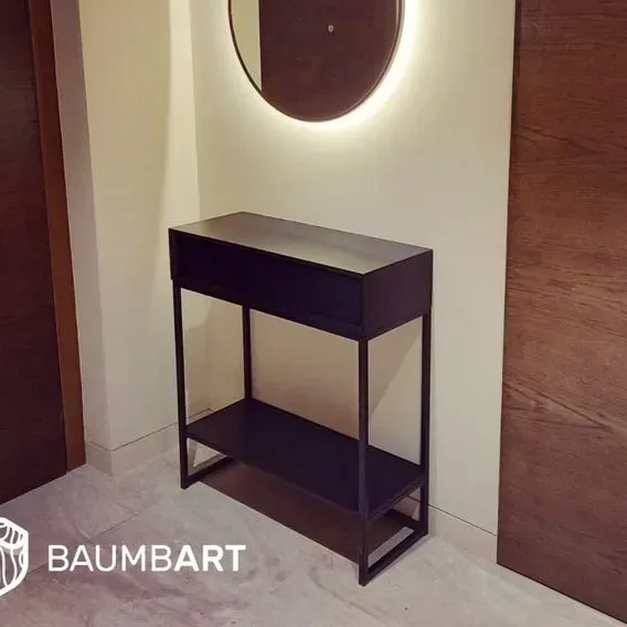 Черная консоль "Элис" создана для тех, кто ценит смелые интерьерные решения. Лаконичный дизайн в стиле лофт с выразительным металлическим каркасом станет ярким акцентом в вашей прихожей. Модель органично впишется как в индустриальную стилистику, так и в современный минимализм.