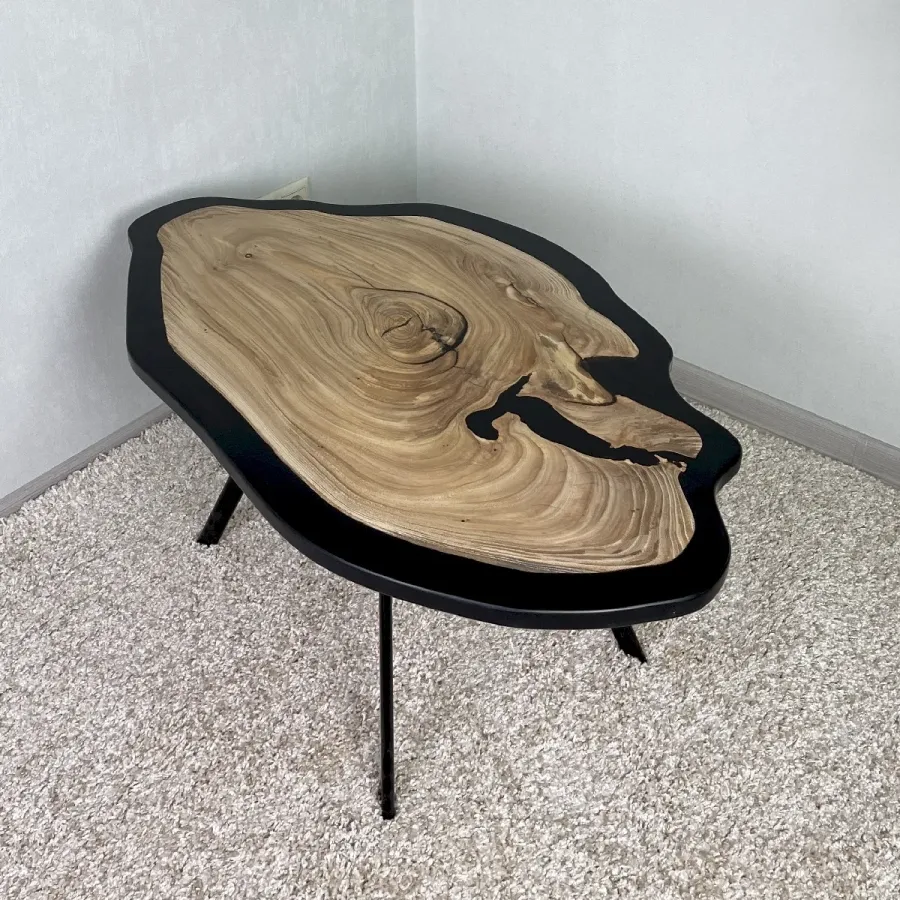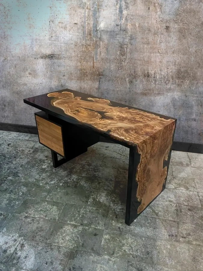 Письменный стол из слэба карагача с чёрной эпоксидной смолой — синтез природы и технологии